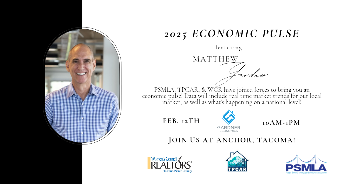 The Tacoma-Pierce County Association of REALTORS® is proud to partner with the Puget Sound Mortgage Lending Association (PSMLA) and the Women’s Council of REALTORS® (WCR) to host the highly anticipated 2025 Economic Forecast Luncheon!